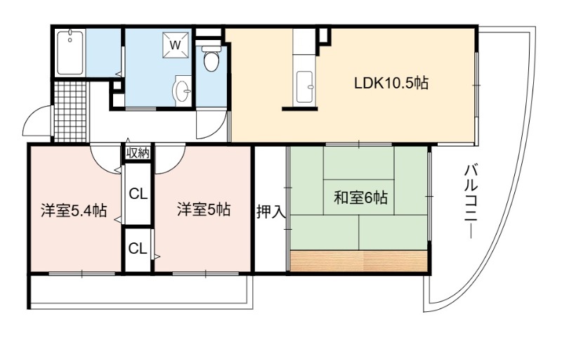 | 間取り詳細 | LDK 10.5畳 、 和室 6畳 、 洋室 5.4畳 、 洋室 5畳 |