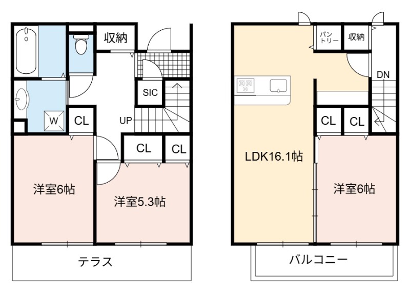 洋室 6畳 洋室 6畳 洋室 5.3畳 |