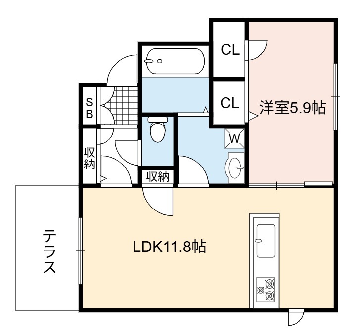 | 間取り詳細 | LDK 11.8畳 、 洋室 5.9畳 |