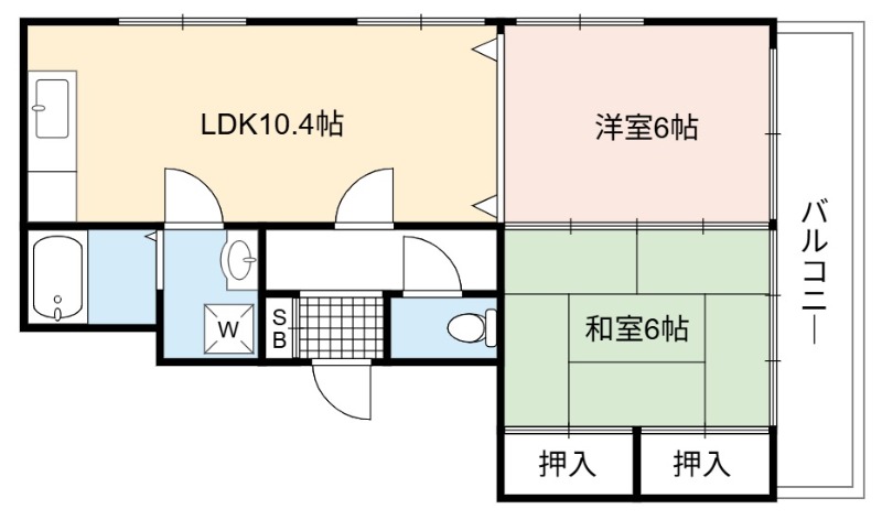 | 間取り詳細 | LDK 10.4畳 、 洋室 6畳 、 和室 6畳 |