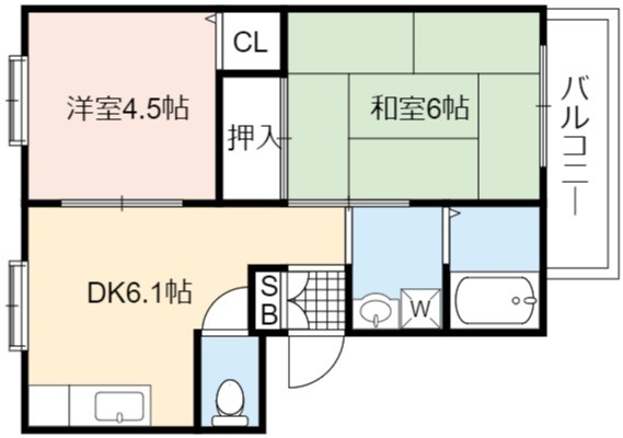 | 間取り詳細 | DK 6.1畳 、 和室 6畳 、 洋室 4.5畳 |