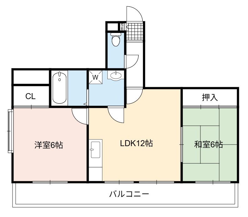 | 間取り詳細 | LDK 12畳 、 洋室 6畳 、 和室 6畳 |