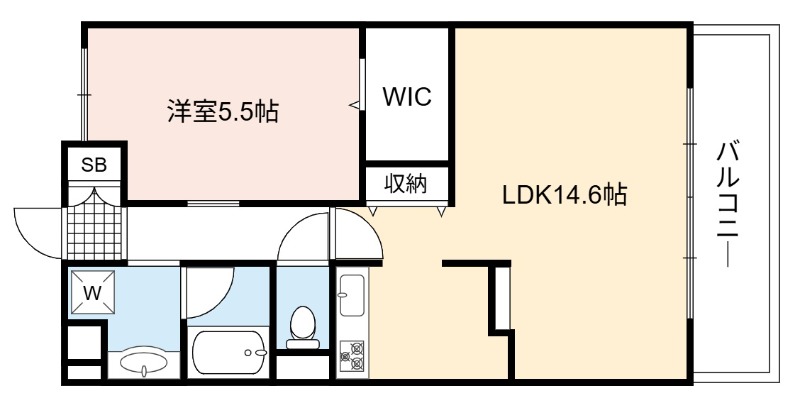 | 間取り詳細 | LDK 14.6畳 、 洋室 5.5畳 |