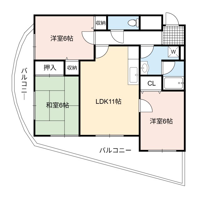 | 間取り詳細 | LDK 11畳 、 洋室 6畳 、 洋室 6畳 、 和室 6畳 |