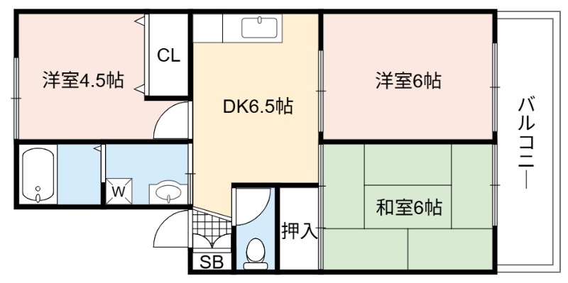 | 間取り詳細 | DK 6.5畳 、 洋室 6畳 、 和室 6畳 、 洋室 4.5畳 |