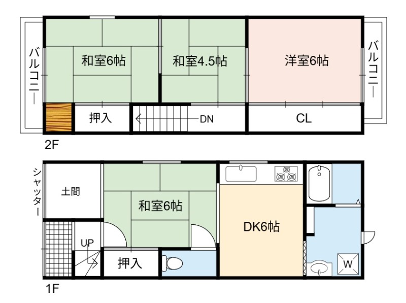 | 間取り詳細 | DK 6畳 、 洋室 6畳 、 和室 6畳 、 和室 6畳 、 和室 4.5畳 |