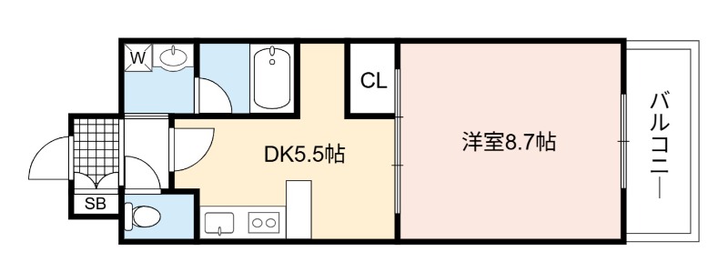 | 間取り詳細 | DK 5.5畳 、 洋室 8.7畳 |