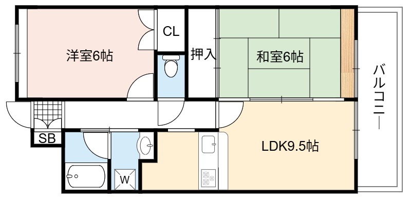 | 間取り詳細 | LDK 9.5畳 、 洋室 6畳 、 和室 6畳 |