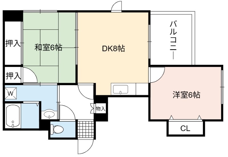 | 間取り詳細 | DK 8畳 、 洋室 6畳 、 和室 6畳 |
