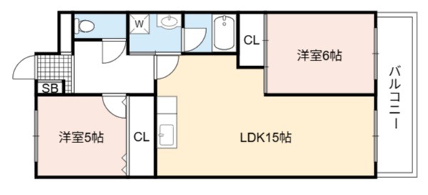 | 間取り詳細 | LDK 15畳 、 洋室 6畳 、 洋室 5畳 |