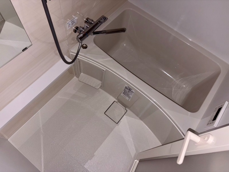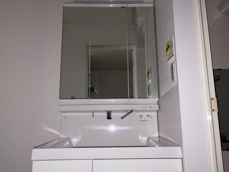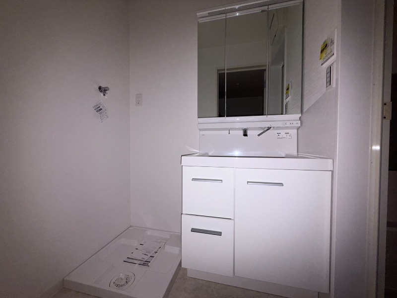 今福鶴見駅徒歩5分の駅近新築物件。オートロック・宅配ボックス付きの角部屋で、浴室乾燥機や温水洗浄便座、シャンプードレッサーも備えた快適な住まい。