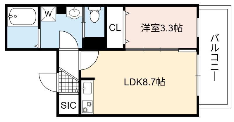 | 間取り詳細 | LDK 8.2畳 、 洋室 3.3畳 |