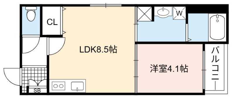 | 間取り詳細 | LDK 8.5畳 、 洋室 4.1畳 |