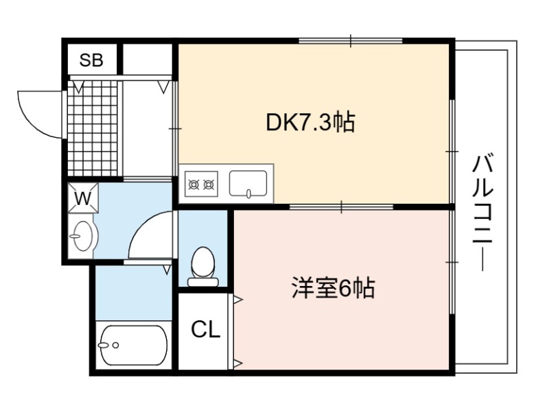 | 間取り詳細 | DK 7.3畳 、 洋室 6畳 |