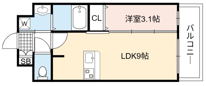 | 間取り詳細 | LDK 9畳 、 洋室 3.1畳 |
