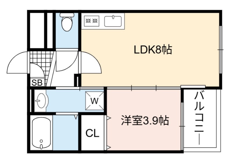 | 間取り詳細 | LDK 8畳 、 洋室 3.9畳 |