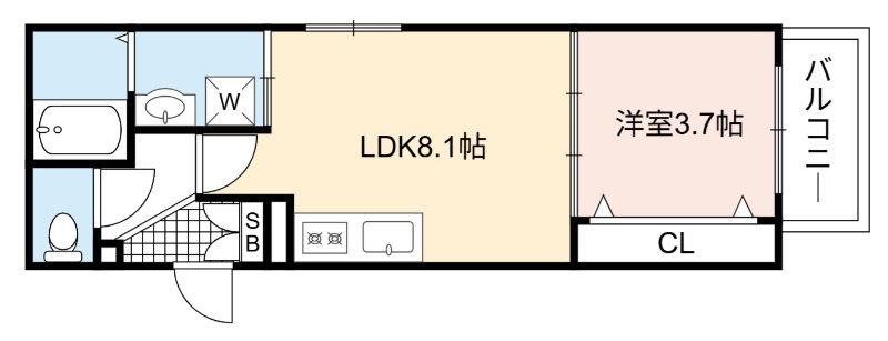| 間取り詳細 | LDK 8.1畳 、 洋室 3.7畳 |